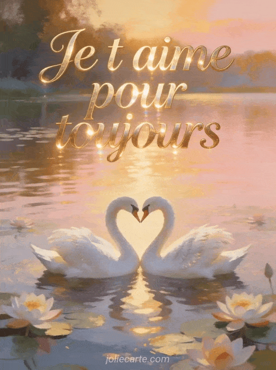 Envoyez cette image « Je t'aime pour toujours » avec ses cygnes au coucher du soleil. Pour varier, découvrez un poÚme d'amour, une image animée je t'aime ou un message romantique.