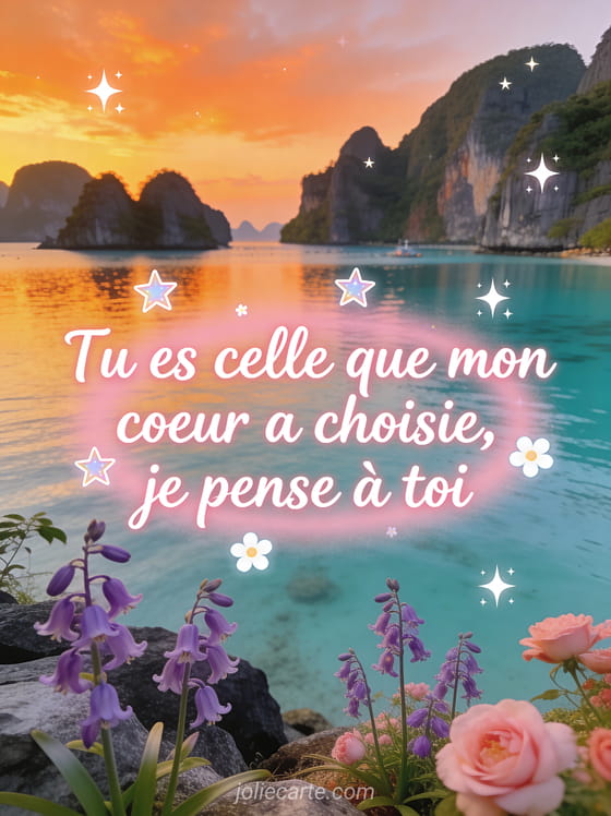Tu es celle que mon coeur a choisie, je pense à toi un message d'amour pour dire je pense à toi ma chérie