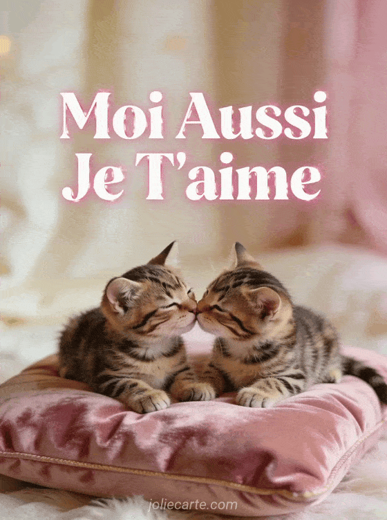 RĂ©pondez avec tendresse grĂące Ă cette image « Moi Aussi Je T'aime » et ses deux chatons se cĂąlinant. Essayez aussi un cĆur en pĂ©tales, un ourson cĂąlin ou un je t'aime festif.