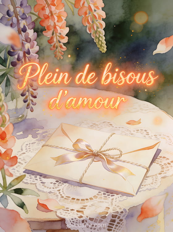 Pour ecrire un sms d'amour bisous, cette carte gratuite permet d'envoyer une pensee romantique, simple et immediate. Elle se marie avec un gif gros bisous mon coeur, un sms bisous mon amour et une image gros bisous mon amour pour faire passer votre affection avec naturel.