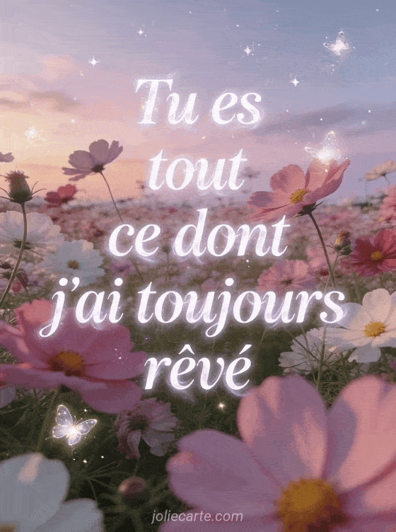 Dites-lui qu'il est le rĂȘve devenu rĂ©alitĂ© avec cette carte romantique et gratuite. ComplĂ©tez avec une carte mes priĂšres, un message arrivĂ© de mieux ou une dĂ©claration belle histoire.