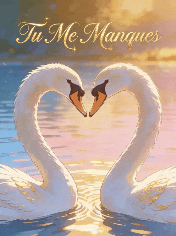 Ces deux cygnes formant un cĆur symbolisent l'amour d'un couple sĂ©parĂ©. Une image pour dire « Tu Me Manques » Ă l'ĂȘtre aimĂ©. DĂ©couvrez aussi un texte d'amour, un gif adorable ou une citation d'amitiĂ©.