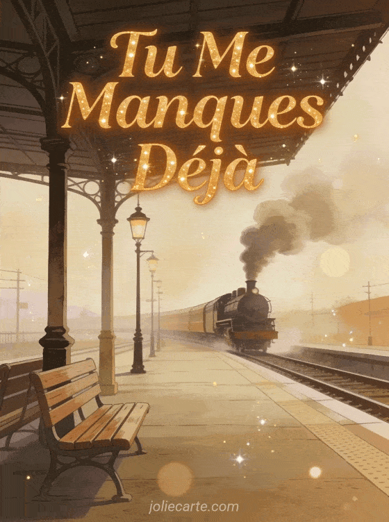 Envoyez cette image « Tu Me Manques Déjà » pour exprimer un manque immédiat. Une gare vintage et un train qui s'éloigne évoquent les adieux. Découvrez aussi un message bonne nuit, un texte pour maman ou une déclaration d'amour.