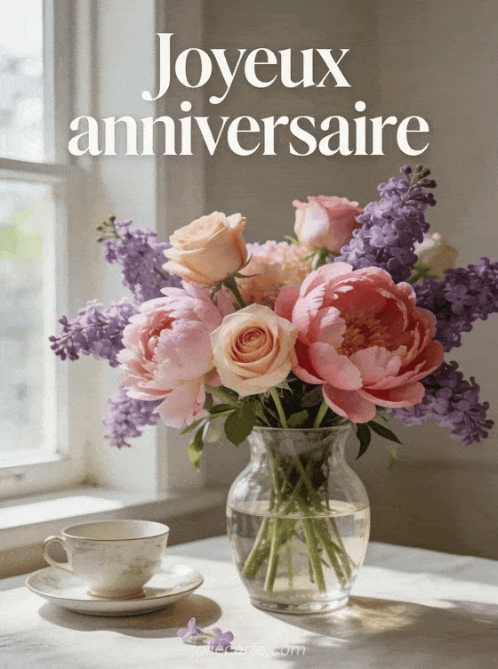 Célébrez un anniversaire femme avec des fleurs grùce à cette image élégante et naturelle. Pour compléter vos attentions, découvrez des cartes anniversaire femme, un joyeux anniversaire femme en gif ou des images anniversaire femme.