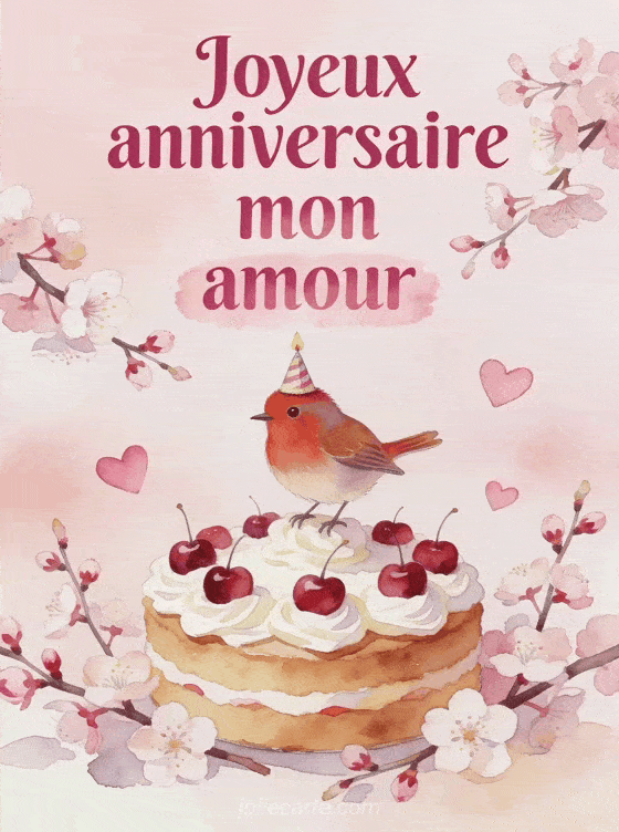 CĂ©lĂ©brez l'anniversaire de votre amour avec cette carte tendre ornĂ©e d'un rouge-gorge et de cerisiers. DĂ©couvrez aussi une photo anniversaire jardin, un anniversaire romantique cĆur ou un anniversaire amour secret.