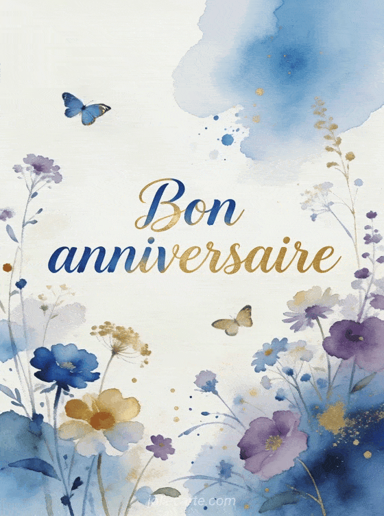 Offrez un bon anniversaire aquarelle avec cette image artistique et raffinée, pleine de poésie et de délicatesse. Découvrez aussi un meme bon anniversaire, un bon anniversaire jeune femme ou un homme bon anniversaire gif homme.