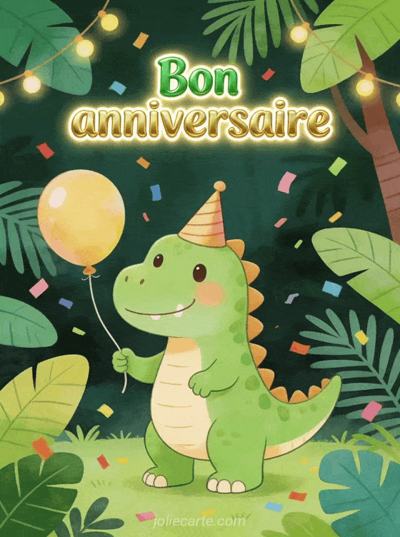 Faites sourire avec un bon anniversaire dinosaure amusant et coloré, idéal pour les petits et grands fans de dinos. Découvrez aussi un bon anniversaire sportif, comment on souhaite bon anniversaire ou un bon anniversaire gif gratuit.