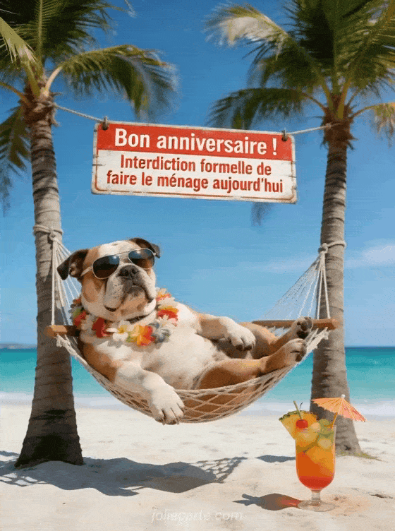 Envoyez un bon anniversaire drĂŽle pour offrir un moment de rire et de dĂ©tente en cette journĂ©e de fĂȘte. DĂ©couvrez aussi un gif animĂ© chat rigolo anniversaire humour, un gif humour anniversaire ou un chat humour gif anniversaire.