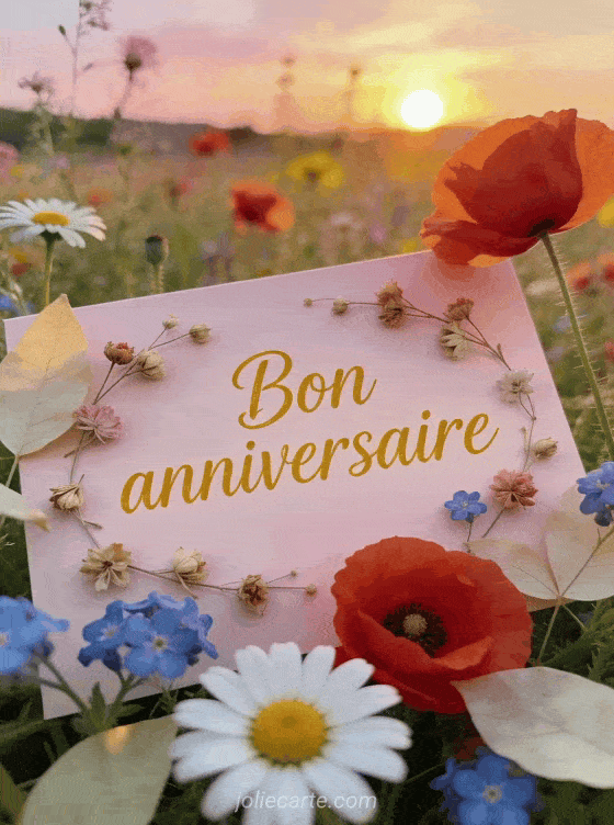 Offrez un bon anniversaire fleurs des champs avec cette image champĂȘtre et poĂ©tique, pleine de couleurs naturelles. DĂ©couvrez aussi un bon anniversaire jeune homme, un joyeux anniversaire bon anniversaire ou un bon anniversaire gif homme.