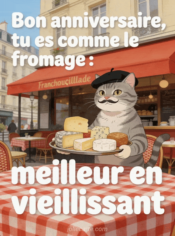 Bon anniversaire, tu es comme le fromage : meilleur en vieillissant une carte qui sent bon l'humour et le terroir