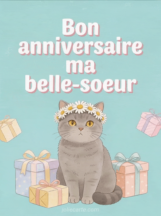 Bon anniversaire ma belle-sĆur un petit chat couronnĂ© de fleurs pour sa fĂȘte