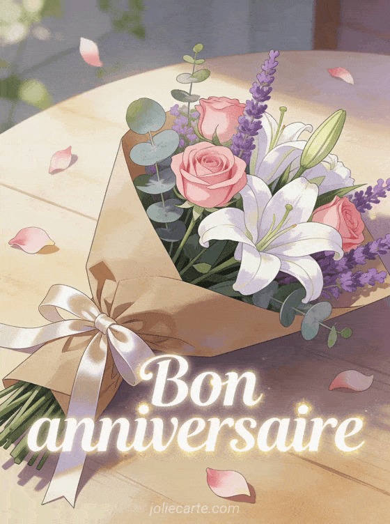 Offrez un bouquet de fleurs bon anniversaire composé de roses et lys pour une attention délicate et parfumée. Découvrez aussi une écriture bon anniversaire, un bon anniversaire SMS ou une carte bon anniversaire.