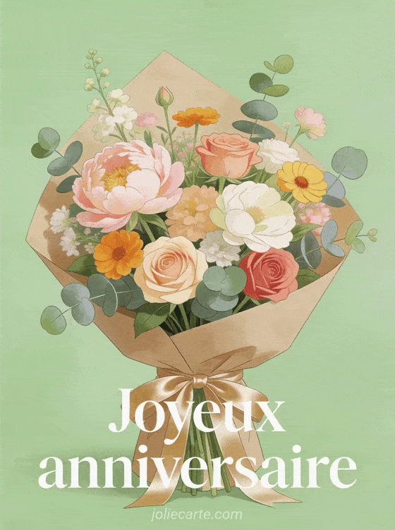 Offrez un bouquet de fleurs animé pour souhaiter un joyeux anniversaire avec élégance et douceur. Découvrez aussi un joyeux anniversaire animé garçon, une carte anniversaire 1 an animée ou un anniversaire animé.