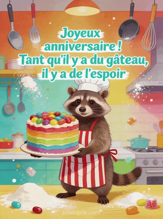 Joyeux anniversaire ! Tant qu'il y a du gùteau, il y a de l'espoir une carte anniversaire animée pleine d'humour pour femme