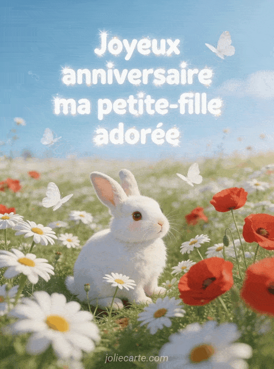 Joyeux anniversaire ma petite-fille adorĂ©e un petit lapin et des fleurs pour fĂȘter ce beau jour