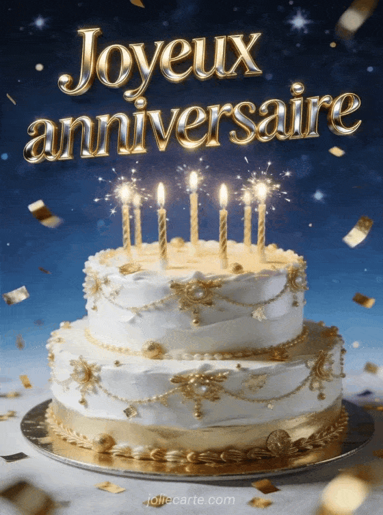 CĂ©lĂ©brez l'anniversaire de votre beau-fils avec cette carte au gĂąteau dorĂ© somptueux. Une pluie de confettis pour une journĂ©e mĂ©morable. Voir aussi un texte printanier, un message du cĆur ou des vĆux magiques.