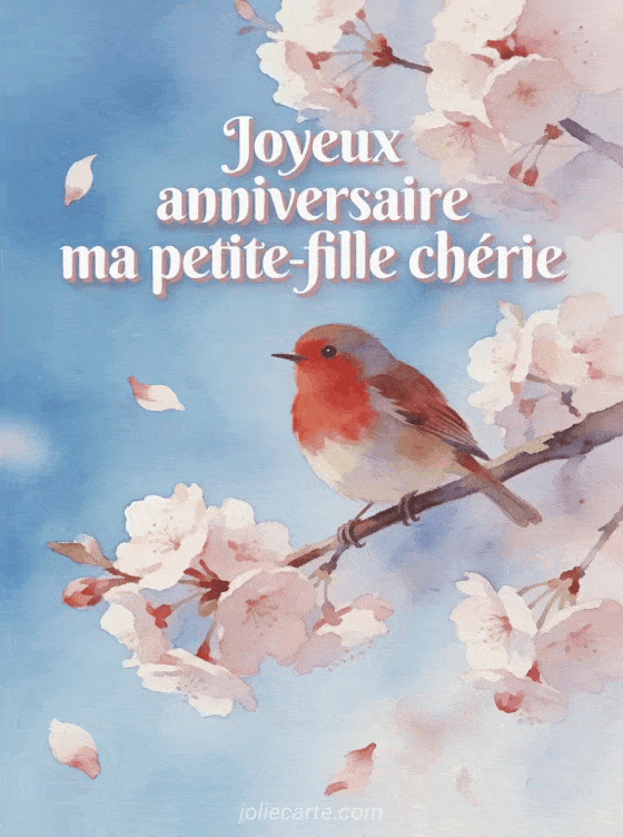 Joyeux anniversaire ma petite-fille chĂ©rie un rouge-gorge et des cerisiers pour fĂȘter ce jour merveilleux