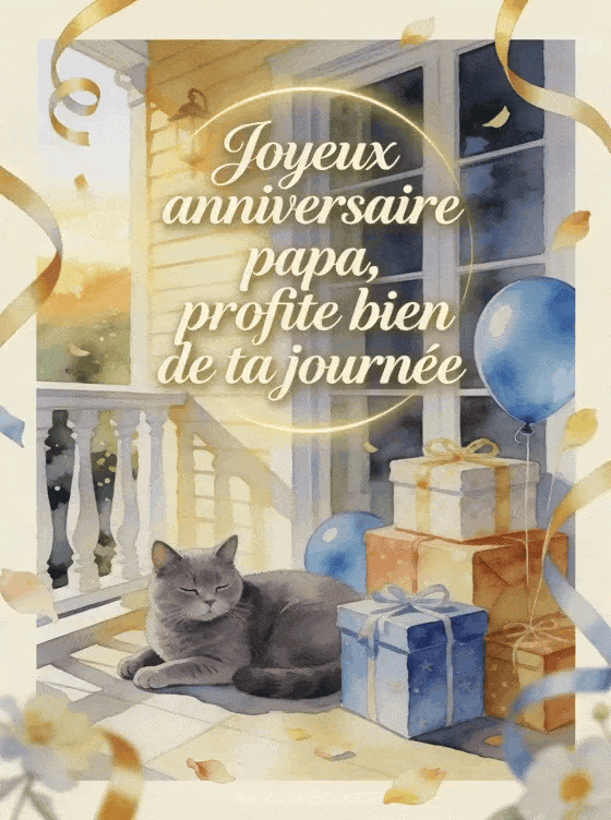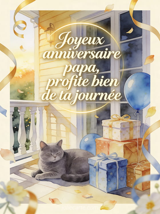 Joyeux anniversaire papa, profite bien de ta journée une carte tendre pour souhaiter un joyeux anniversaire à ton papa