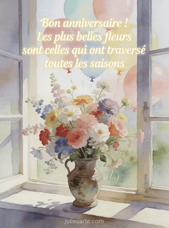Bon anniversaire ! Les plus belles fleurs ont traversé toutes les saisons une citation pleine de tendresse pour l'anniversaire d'une personne ùgée