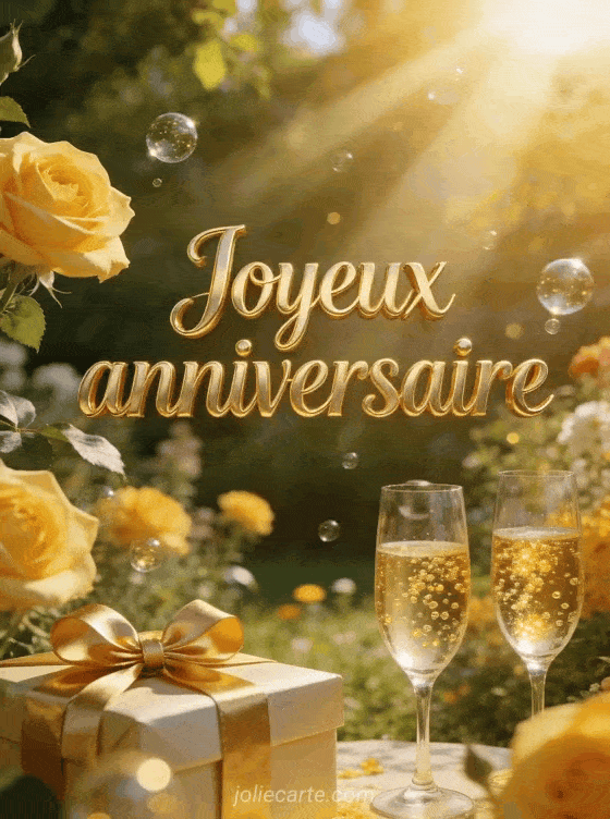 Trinquez avec une coupe de champagne pour un joyeux anniversaire festif et pétillant. Découvrez aussi un joyeux anniversaire chic et élégant, un joyeux anniversaire moderne ou un joyeux anniversaire animation gratuite.