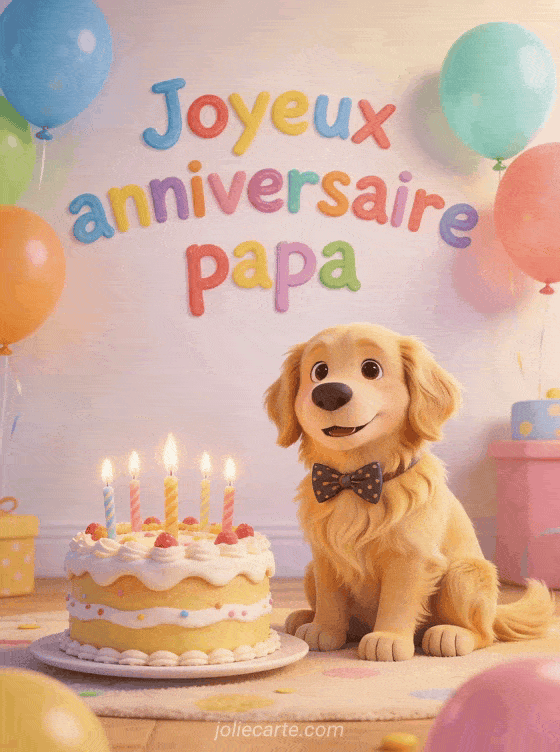 Partagez ce dessin festif pour fĂȘter l'anniversaire de papa avec un sourire. DĂ©couvrez aussi une carte anniversaire papa, un joyeux anniversaire papa ou une carte drĂŽle avec chiens.