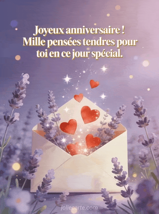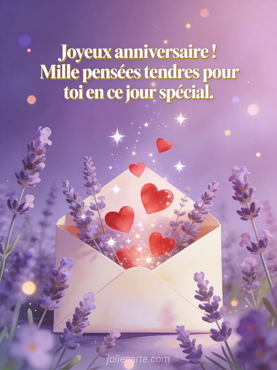 Joyeux anniversaire ! Mille pensées tendres pour toi en ce jour spécial. envoyer un message d'anniversaire tendre et gratuit