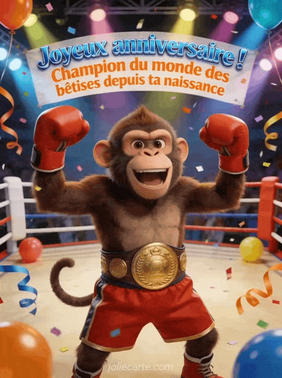 Joyeux anniversaire ! Champion du monde des bĂȘtises depuis ta naissance un joyeux anniversaire humoristique pour un garçon