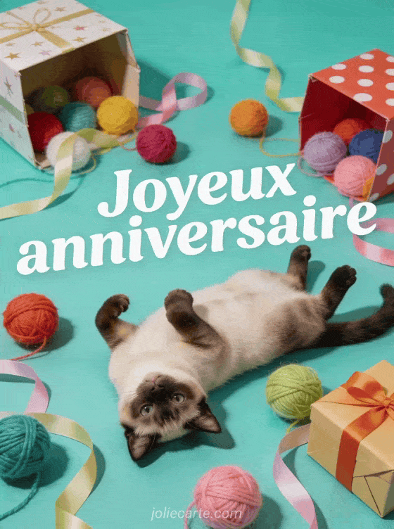 Joyeux anniversaire un gif animé avec un chat joueur pour un joyeux anniversaire