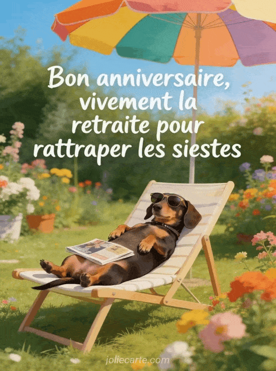 Bon anniversaire, vivement la retraite pour rattraper les siestes un gif drĂŽle pour un homme qui rĂȘve de farniente