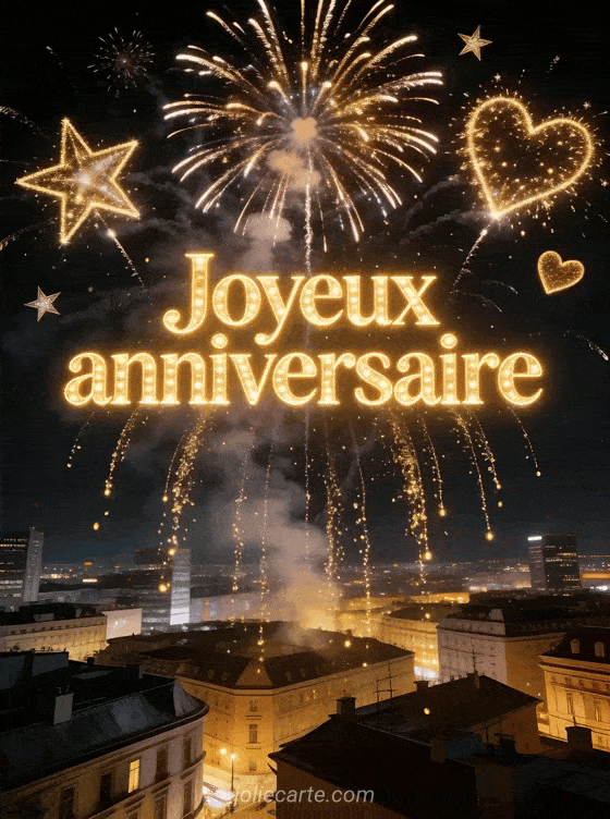 Joyeux anniversaire un gif avec feu d'artifice animé pour des voeux d'anniversaire grandioses