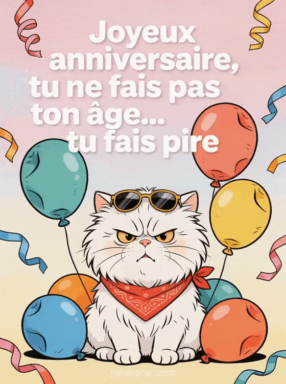 Faites rire un homme avec ce gif anniversaire plein d'autodérision. Variez avec une photo noble, un SMS fleuri ou une image catastrophe.
