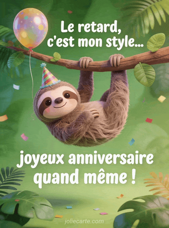 Humour joyeux anniversaire en retard un paresseux qui assume totalement le retard