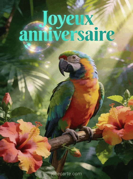Joyeux anniversaire une image animée colorée pour des voeux d'anniversaire exotiques