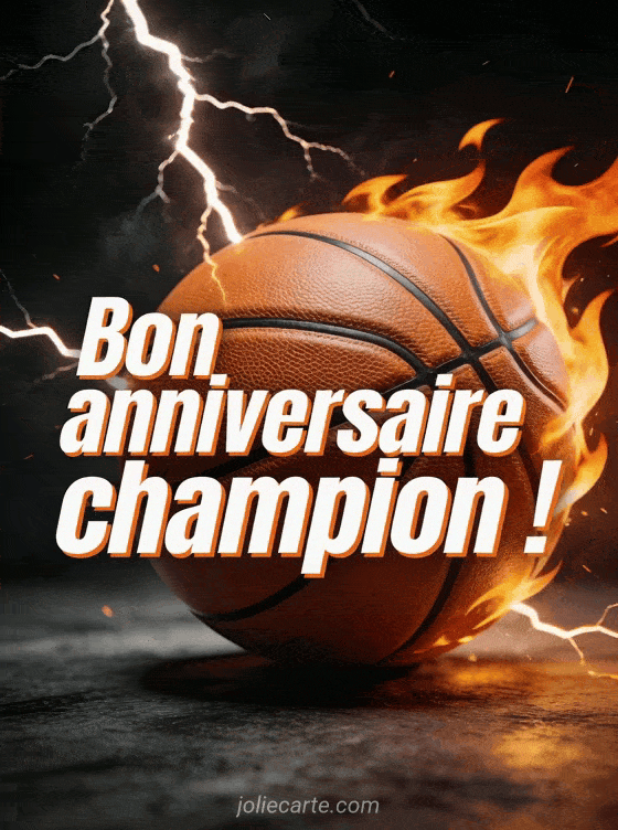 Offrez cette image anniversaire sportive à un ado fan de basket. Un ballon enflammé et une ambiance énergique pour un anniversaire de champion. Voyez aussi un anniversaire spatial, un anniversaire musical ou un anniversaire gaming.