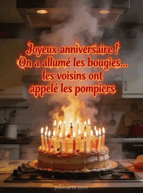 Joyeux anniversaire ! On a allumé les bougies... les voisins ont appelé les pompiers une image anniversaire humour à partager pour un fou rire garanti
