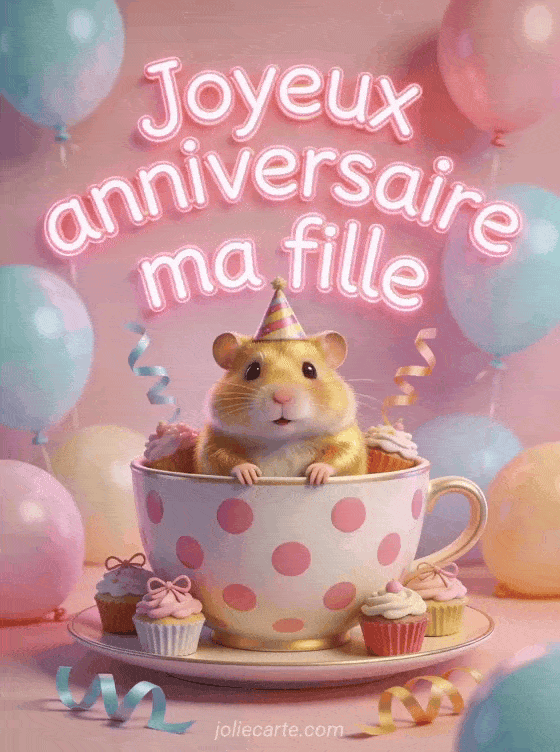 Joyeux anniversaire ma fille une image craquante avec un hamster festif pour votre fille