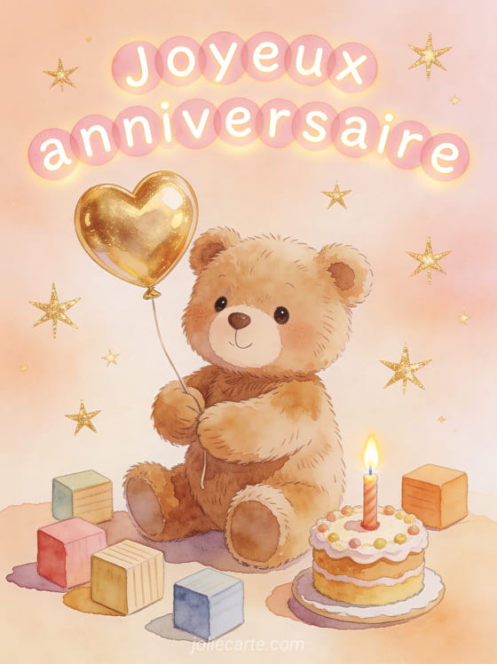 Célébrez un joyeux anniversaire avec bébé grùce à cette image douce et lumineuse. Découvrez aussi un gif anniversaire rigolo enfant, une carte joyeux anniversaire bébé ou un message joyeux anniversaire rigolo enfant.