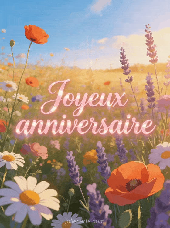 Envoyez une image de joyeux anniversaire avec des fleurs champĂȘtres pour une attention pleine de fraĂźcheur et de couleurs. DĂ©couvrez aussi un joyeux anniversaire nature et paysage, des pivoines pour un joyeux anniversaire fleuri ou un joyeux anniversaire musical.