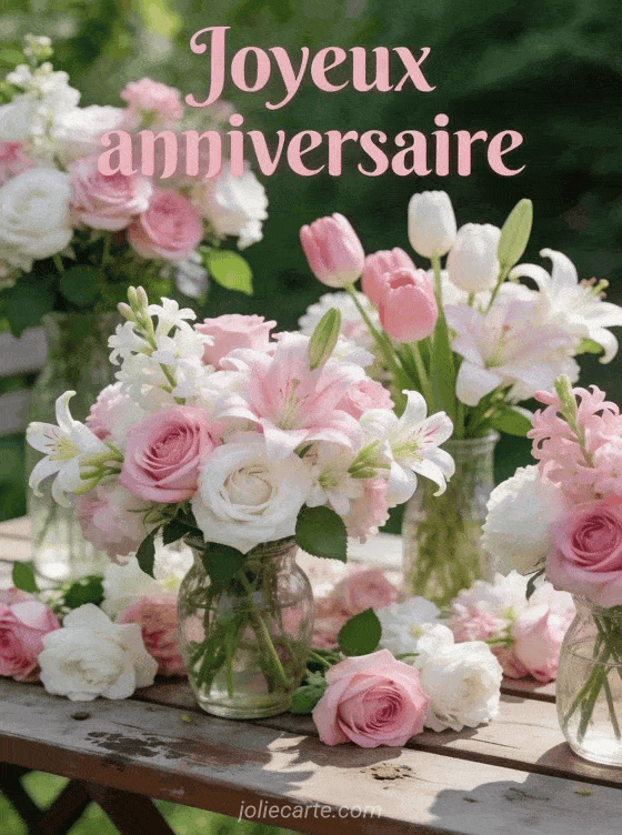 Partagez ces images anniversaire femme fleurs pour célébrer dans un jardin de beauté et de couleurs. Découvrez aussi une image joyeux anniversaire femme chien, un gif anniversaire femme drÎle ou une carte voeux anniversaire femme.