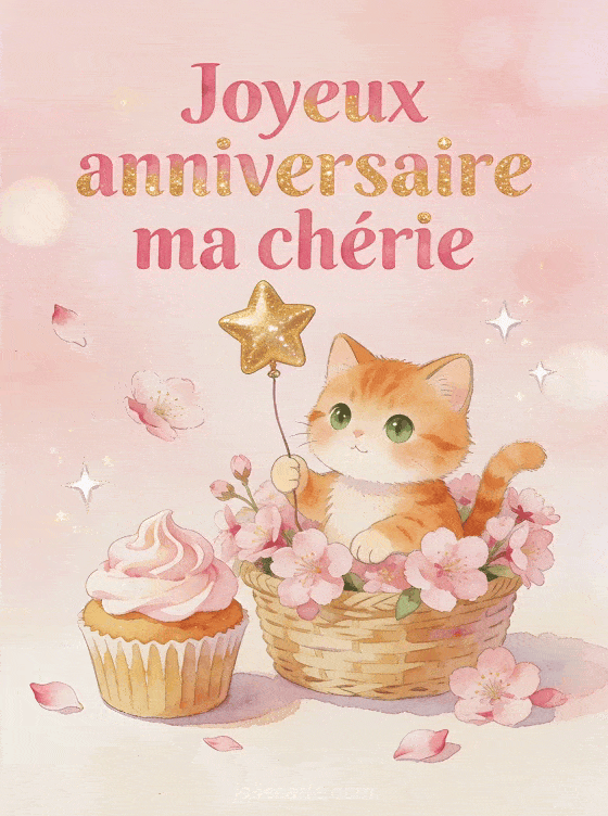 Envoyez un anniversaire plein de douceur à votre chérie avec ce chaton irrésistible. Voir aussi un anniversaire de rencontre, une carte anniversaire mon amour ou un message anniversaire soirée.