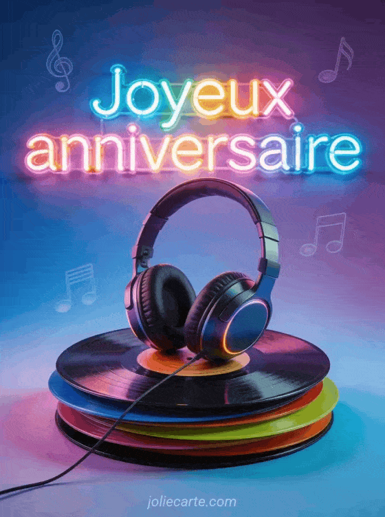 Célébrez l'anniversaire d'un ado avec cette carte musicale aux couleurs vibrantes. Casque audio et vinyles pour un style branché et moderne. Voyez aussi un anniversaire gourmand, un anniversaire humour ou un anniversaire street art.