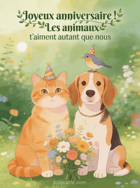 Carte joyeux anniversaire amie des animaux