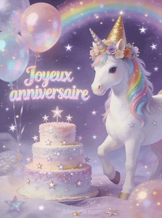 Souhaitez un joyeux anniversaire avec cette carte magique mettant en scÚne une adorable bébé licorne. Découvrez aussi une carte bébé souhaite joyeux anniversaire, une carte joyeux anniversaire chat bébé ou une carte pour souhaiter joyeux anniversaire à un bébé.