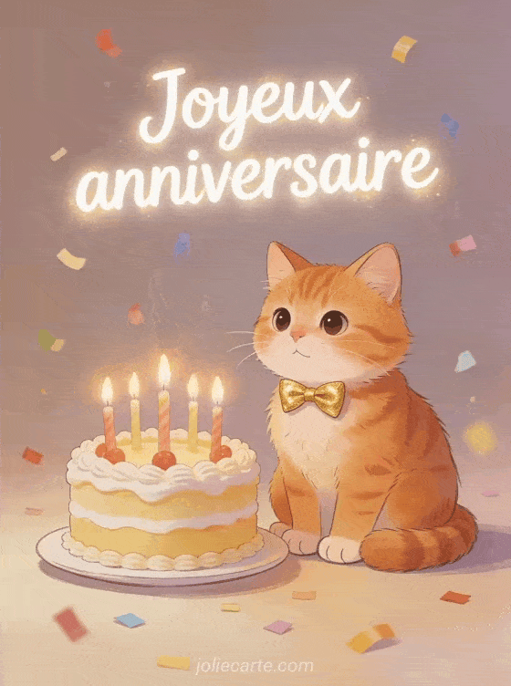Souhaitez un joyeux anniversaire avec un adorable chat pour faire sourire les amoureux des félins. Découvrez aussi des images gratuites joyeux anniversaire fleurs, un joyeux anniversaire fleuri ou un joyeux anniversaire avec un cheval.