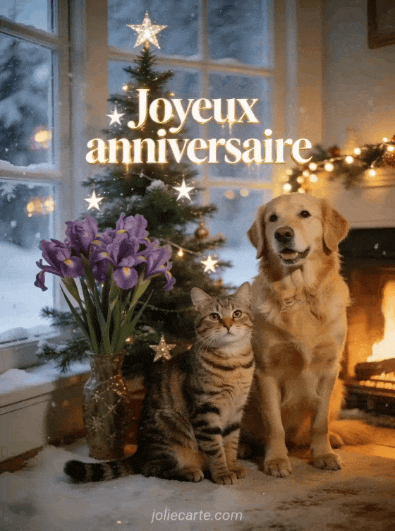 Souhaitez un joyeux anniversaire avec cette carte mettant en scÚne un chien et un chat, parfaite pour les amoureux des animaux. Découvrez aussi une carte gratuite joyeux anniversaire, un joyeux anniversaire coccinelle ou une image joyeux anniversaire fleur.