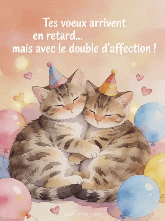 Joyeux anniversaire en retard images deux chatons blottis pour des vĆux tardifs tendres