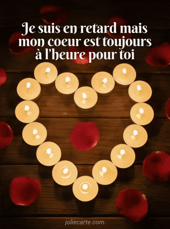Je suis en retard mais mon cĆur est toujours Ă l'heure pour toi des bougies en forme de cĆur pour se faire pardonner
