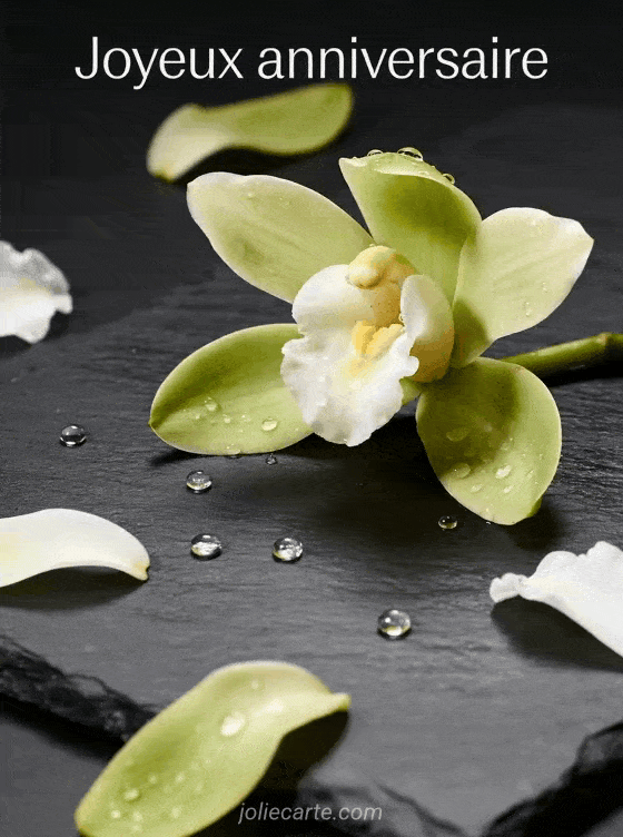 Envoyez cette image épurée d'orchidée sur ardoise pour un anniversaire féminin empreint de classe. Découvrez aussi un anniversaire roses dorées, un gif lanternes ou un bouquet opulent.
