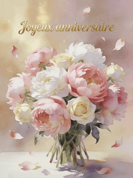 Offrez cette magnifique carte anniversaire ornée de pivoines roses et de roses crÚme pour célébrer une femme qui compte. Découvrez aussi un anniversaire élégant, un anniversaire fleuri ou un anniversaire poétique.
