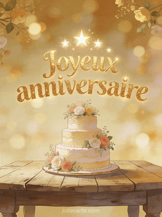 Souhaitez un joyeux anniversaire avec ce gif animé gratuit, parfait pour marquer cette occasion avec éclat. Pour d'autres attentions, découvrez un joyeux anniversaire à envoyer par SMS, une carte virtuelle joyeux anniversaire ou une carte anniversaire originale.